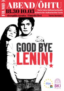 Pole vahet, kas oled noor või vana, huvitab sind ajalugu või filmikunst või tahad lihtsalt kodust välja saada — tule ja veeda koos meiega üks teisipäeva õhtupoolik 2000. aastate hinnatuima saksa filmiga “Hüvasti, Lenin!” (“Good Bye, Lenin!”).
